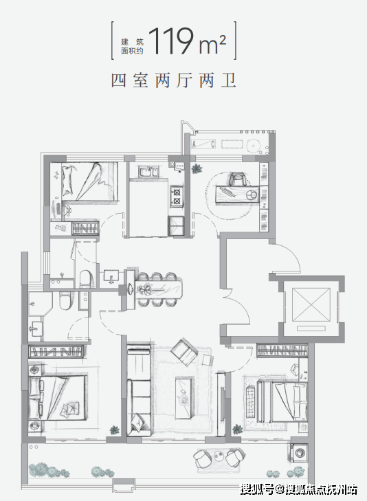 建面约119㎡户型图