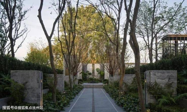 借鉴思南公馆经典的三重归家礼序,项目巧妙利用原始地形打造拥有约2米高差的归家台地,特别设计"三升九阶"的三段式台阶,寓意"步步登高、层层递进、终臻圆满"
