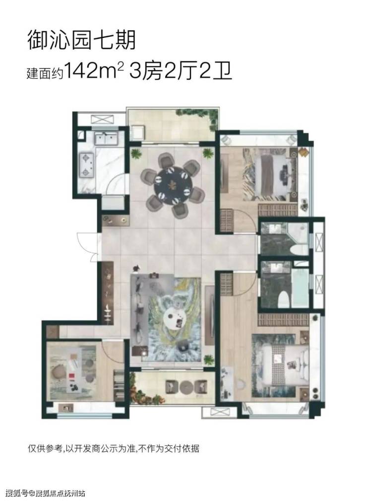 【御沁园】七期将推出3栋18F高层住宅,两梯两户无连廊设计;将推建面约132~172㎡三房户型,其中: