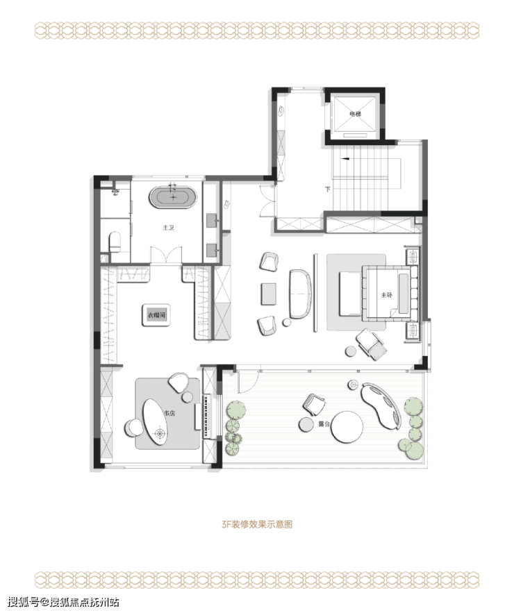 三层私享主卧套房,自成天地。预留室内南向情景空间,当晨光漫过格栅时,这里是临窗执笔的书房;暮色浸染天际时,转身便成了品茗看书的私域;若摆上意式咖啡机,即刻化作俯瞰园景的咖啡厅。落地窗前,定制化场景随心境切换,生活张弛自有章法。