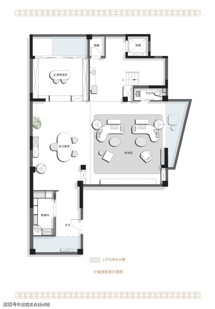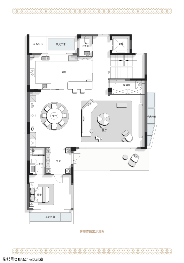 约5.85m挑高地下空间,可轻松实现双层结构,给予了墅居生活更多的可能。三面采光井引清风入怀、邀阳光驻留,彻底打破地下空间的沉闷桎梏——