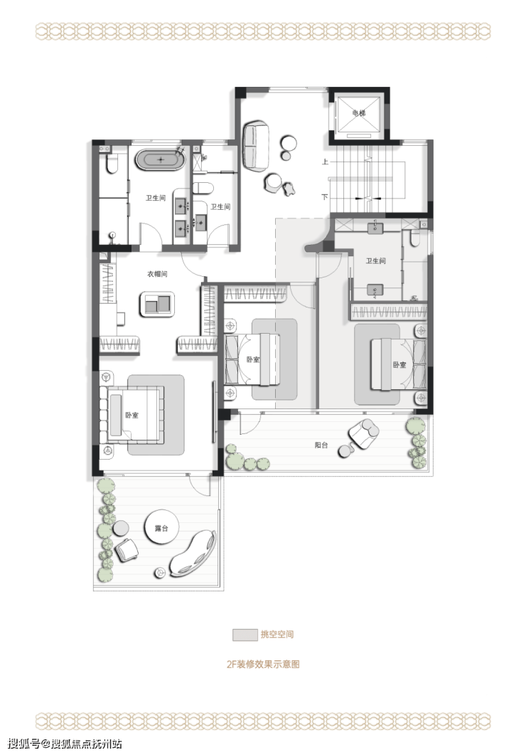 二层约4.5m+3.5m+4m面宽南向三卧双套房设计,理想适配二胎/三胎时代的独立成长空间,三代同堂也可“各得其所又彼此关照”。约18.4㎡环幕露台与约7.5m双联瞰景阳台形成“空中花园”体系,完美包容孩子们的露天生日派对、放学后的运动时光、夜幕降临时全家的观星畅想,和乐栖居。