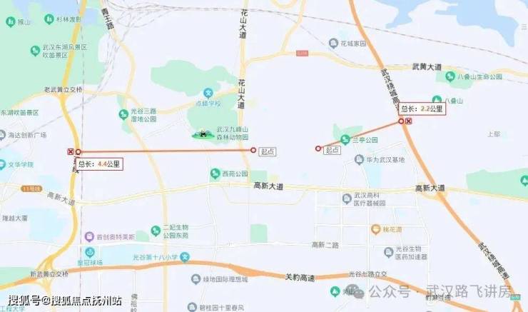 地铁方面:项目G-1、G-2地块与地铁11号线豹澥站直线距离约800多米,A地块与光谷五路直线距离约1.2米,实际步行距离要远不少。