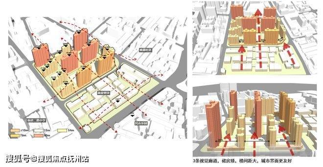 高度满足风貌区控制要求,形成层次丰富的城市空间,从中山大道到京汉大道渐次递增的天际线,侧向间距更大、通透率更高。