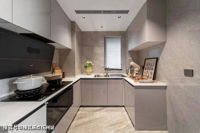 大U型厨房+带飘窗的圆桌餐厅的设计也很诱人,对于喜欢下厨的父母来说大厨房必须得能容纳2-3人同时操作,朗云约107㎡户型的大厨房完全可以满足。