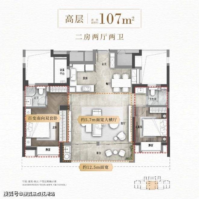 拿朗云刚加推的2#来说,约107㎡户型就是这幢的中间套户型。