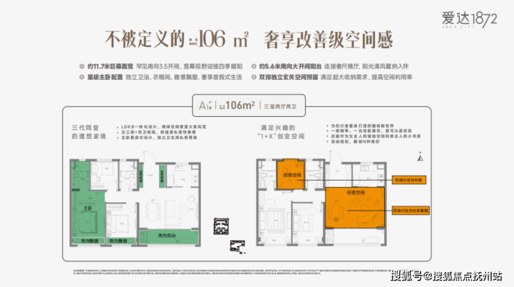 建面106㎡神户型:竟做到3.5开间朝南+5.6米大阳台!对比同行106㎡像鸽子笼…