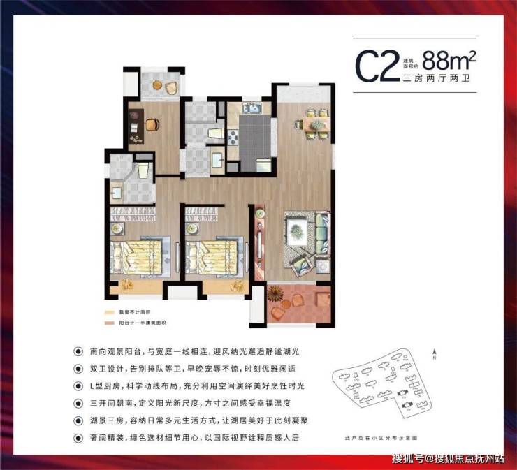 建面约82-88㎡装修户型进阶而来