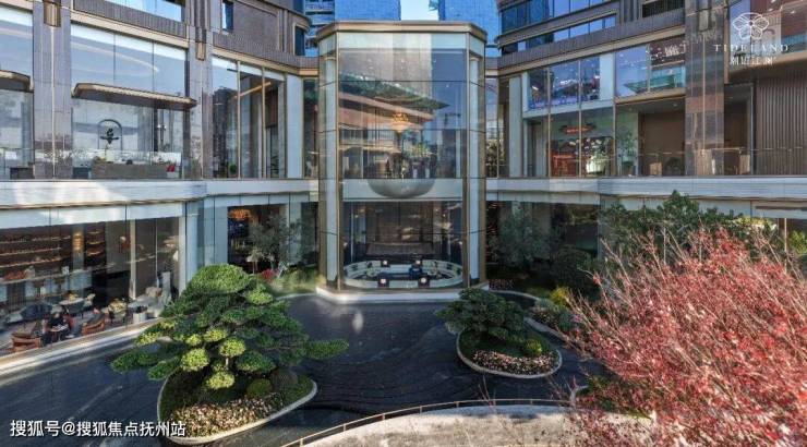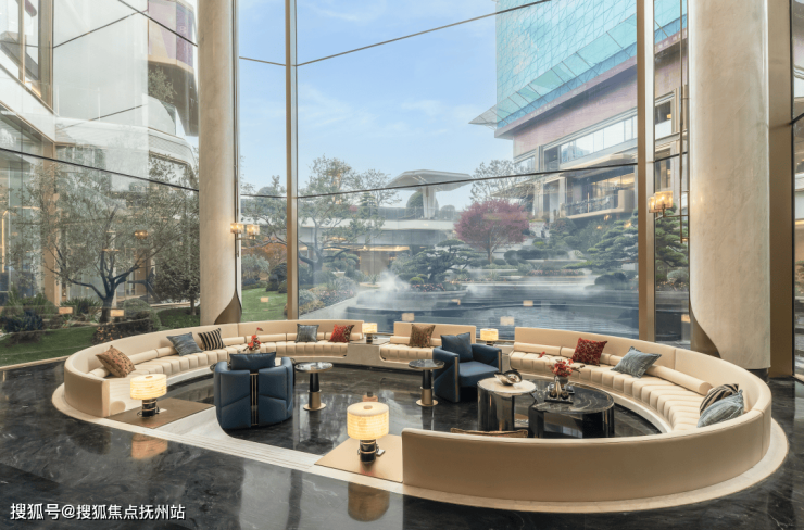 把会所跟下沉式庭院嵌套在一起,几乎已经成为当下所有新楼盘约定俗成的做法。但是这次潮语江澜府在此之上,又做了迭代创新——