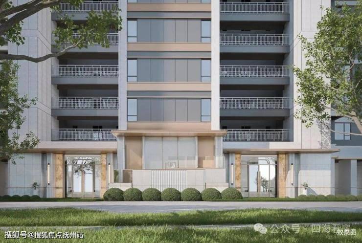 楼栋入户门楣也很有质感: