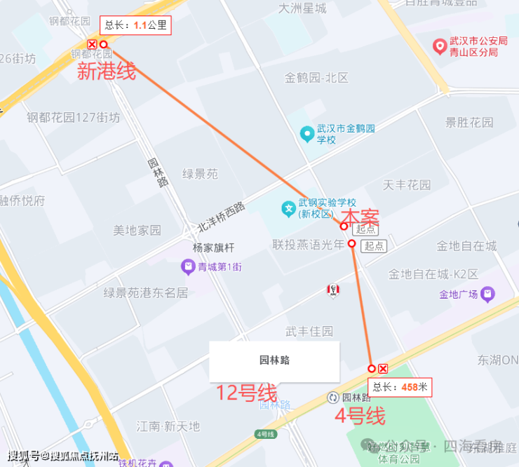 地铁方面:该项目附近有多条地铁线路,其中 南侧直线距离约400多米处的园林路站,是地铁4号线与即将通车的12号线的换乘站,步行很方便就能到地铁站。另外北侧直线距离约1.1公里处新港线西延线钢都花园站,这里也能与地铁12号线进行换乘。