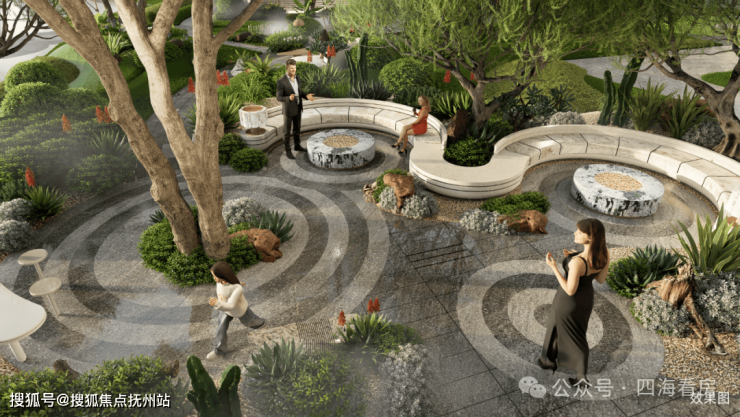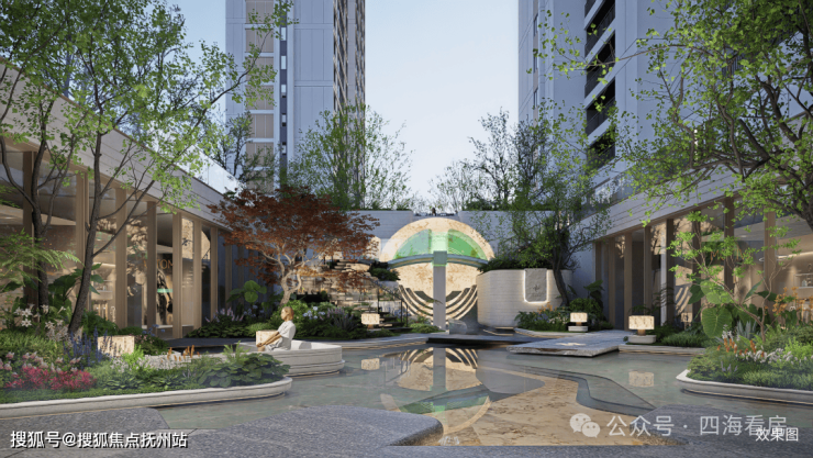 项目园林以“海上明月”为主题,下沉庭院设计图看起来也很美: