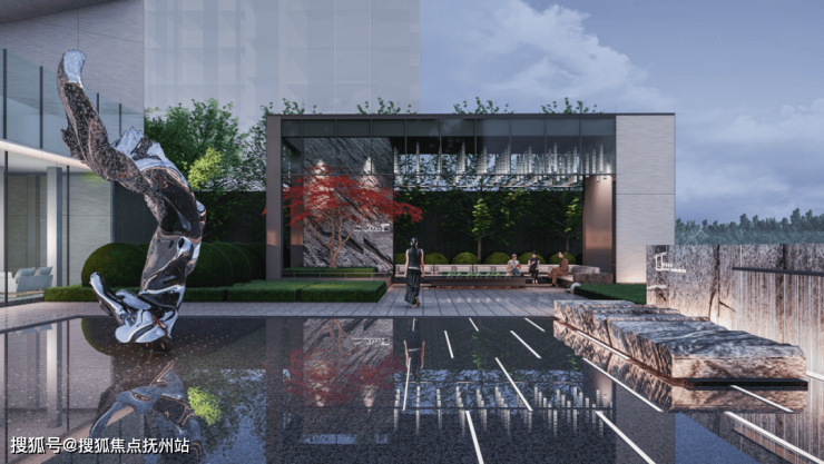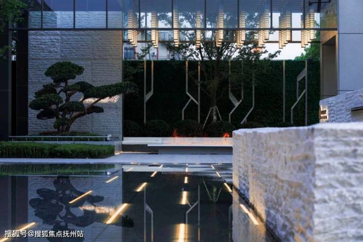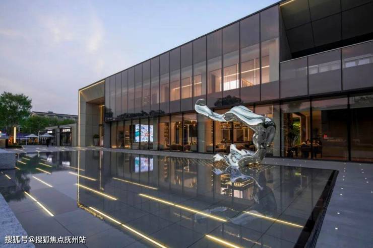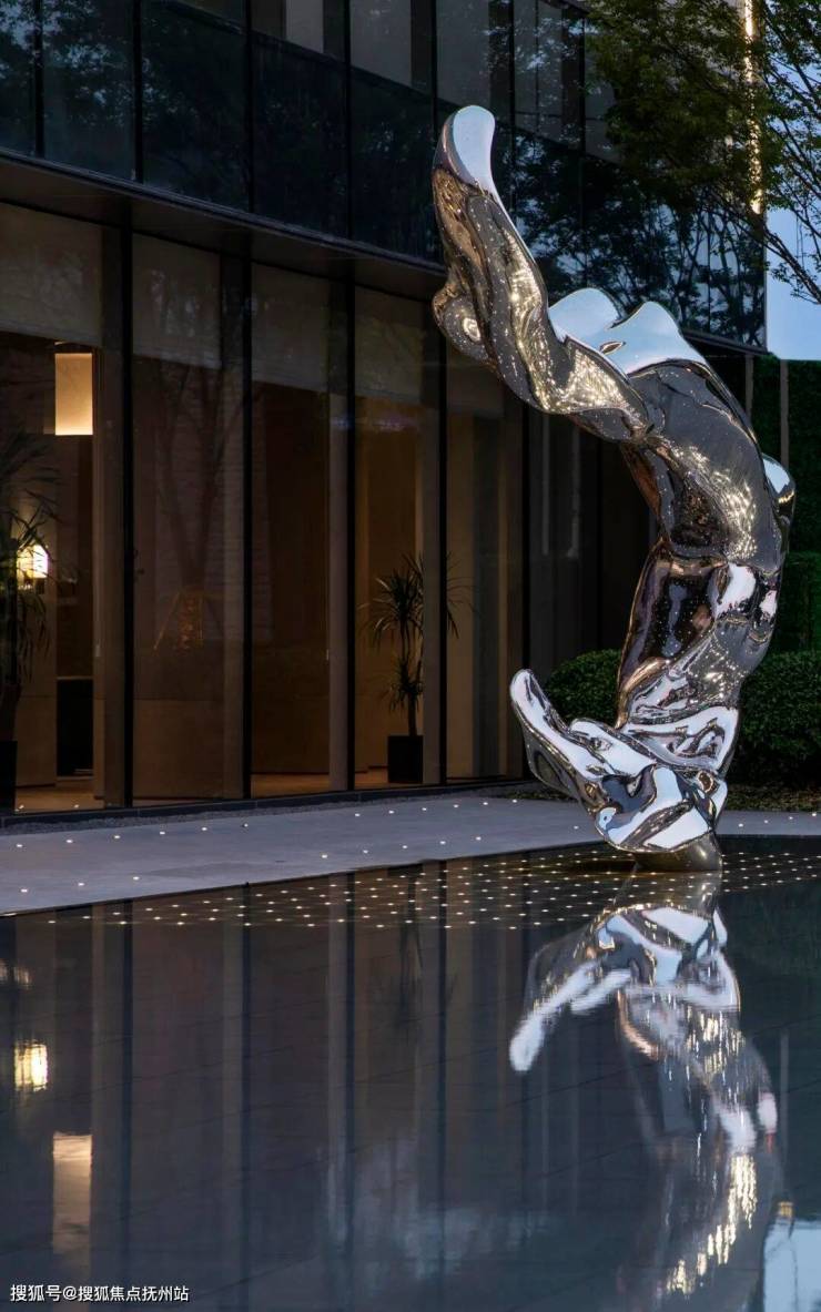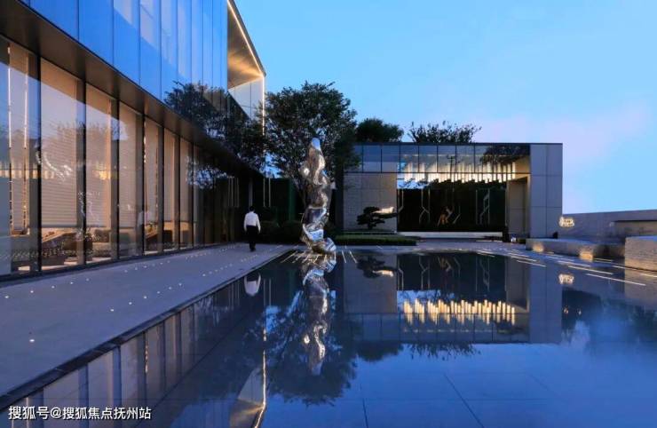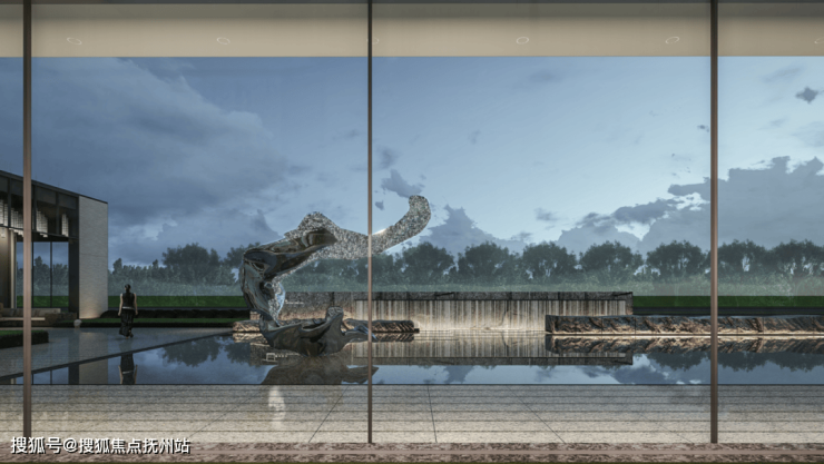 伴随流水潺潺,拾级而上,大面积的镜面水景赋予整个外场空间空灵与纯净,将物境、情境、意境、融为一体,从而与建筑、雕塑、灯光、相映成趣。