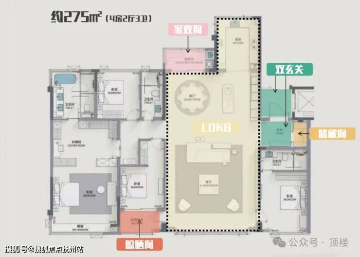 · 全系双套三卫横厅:全系双套房,主卫功能5件套(双台盆),6m-7.1m超宽巨幕横厅