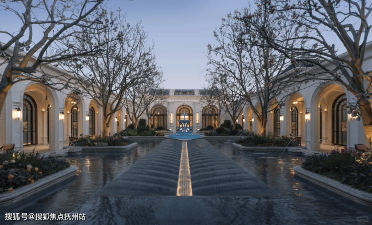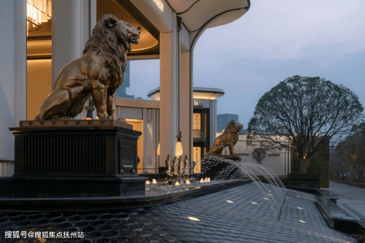 65米环抱式落客前场,灵感来源于“上海豫园-湖心亭九曲桥”,双尊威严铜狮静立,双株名贵金桂伫立,环抱一汪“尊华瑞鳞”水景,寓意流水生财,奠定尊奢门仪。