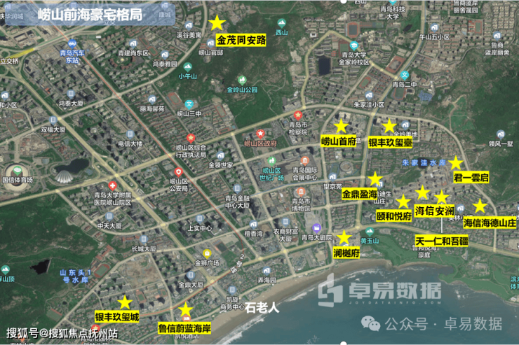 片区内聚集大量高端项目,目前有海信·海德山庄、地王颐和悦府(原柏悦府)、天一仁和吾疆、银丰·玖玺臺、金鼎盈海以及君一·雲启;范围扩大还有崂山首府、银丰玖玺城、澜樾府(黄金海岸)、鲁信蔚蓝海岸等,豪宅云集。
