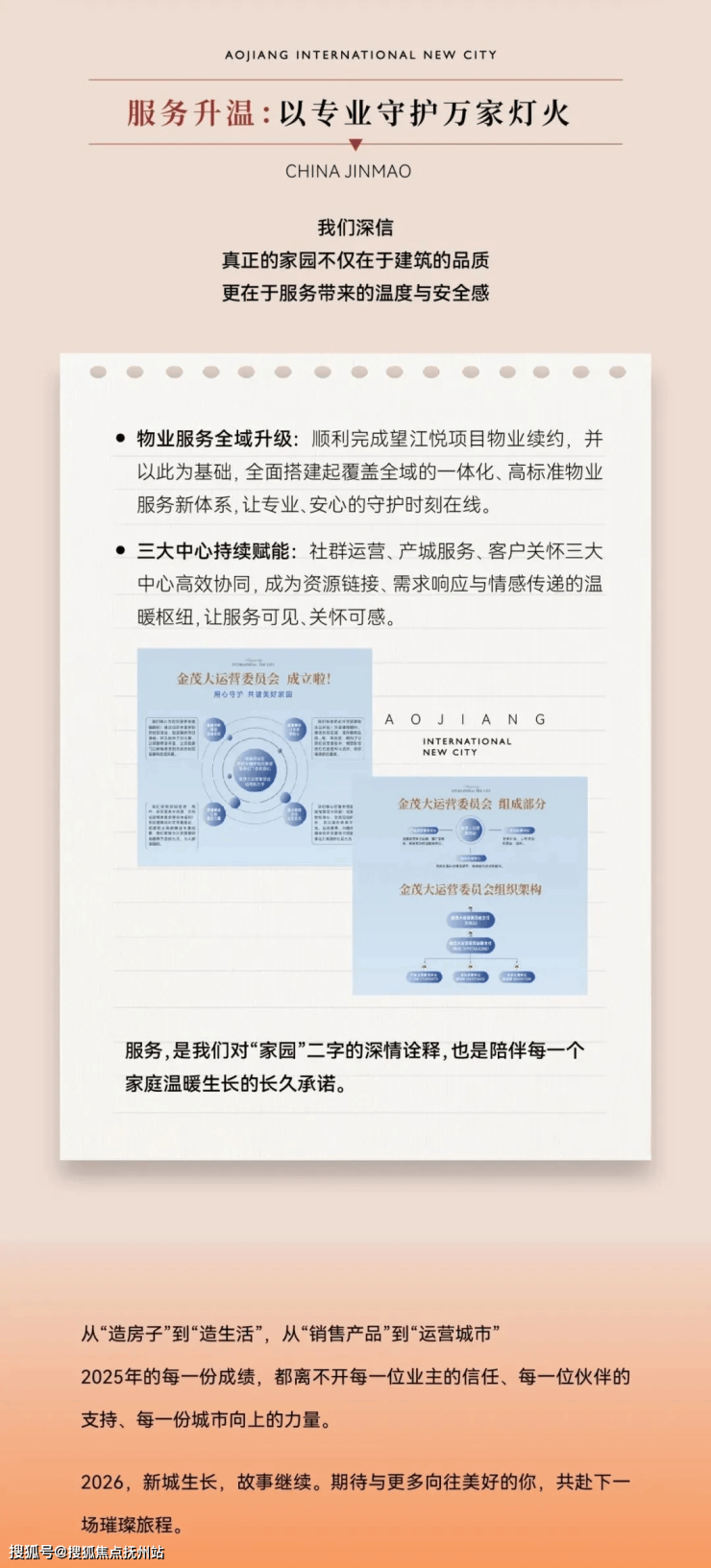 品牌实力稳健彰显:金茂在全温州房企竞争中,位列权益销售金额第八、流量销售金额第九,展现了持续稳健的市场竞争力与运营能力。城企共建深度推进:全年累计接待 432位各级政府领导调研指导,携手各界成功共创16场公共事务与大型共建活动,深度融入区域发展。社群活力蓬勃绽放:全年新孵化69 个兴趣社群,累计举办各类社群活动1680 场,金彩 life 小程序注册超18万;大运营三大中心亮相,匠心打造6场城市级IP 活动,累计城市流量人次超27万+。