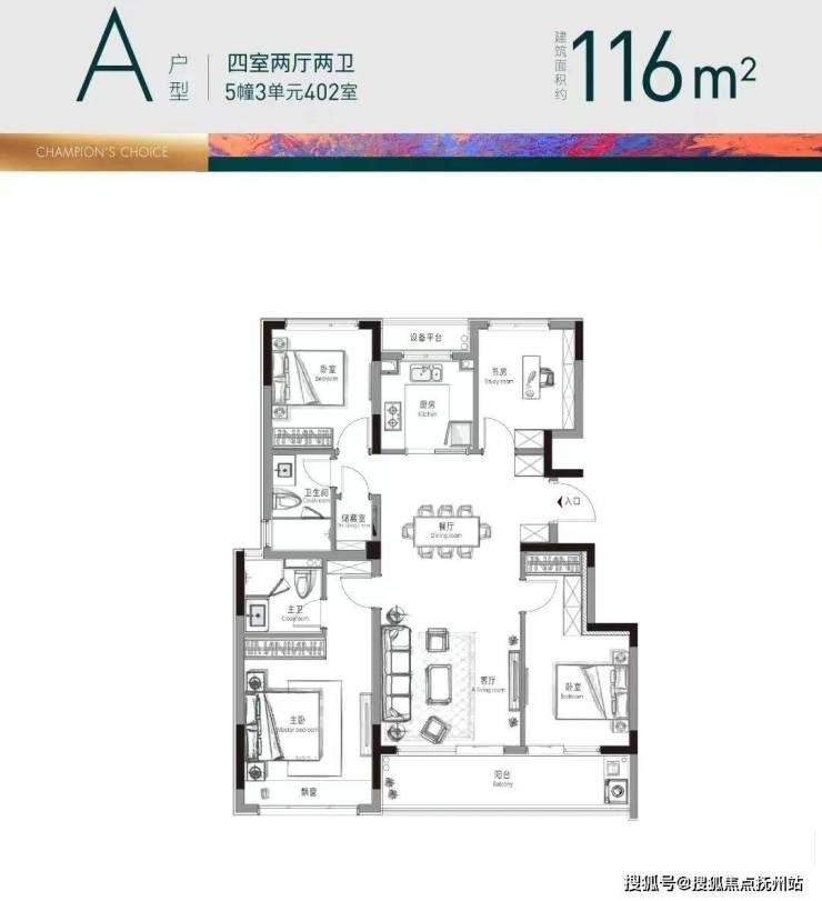 客厅设计一个西厨岛台,餐厅摆一张大圆桌,宽景阳台置上茶桌藤椅,随时都能来一场衣香鬓影的大派对。