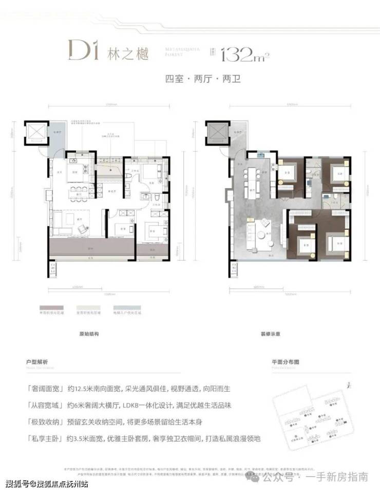 建面约132㎡的四室两卫,为二孩或三代同堂大家庭量身定制。