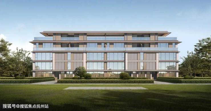 叠墅为地上四层的两叠式户型,其以舒展的水平线条与通透的玻璃立面相互叠合,勾勒出层层退台的视觉观感。此种叠合方式不仅使建筑立面的层次感更为丰富,更暗喻了居住空间具备的多重可能性。大面积的落地窗实现了室内空间与室外景观的无缝衔接,确保了充足的采光以及开阔的视野。为进一步提高居住的舒适度与私密性,每户均配备独立的观景阳台。阳台采用透明玻璃栏杆,保证了视线的通透,同时也为居住者营造出一个能与自然亲密接触的空间。建筑悬挑的屋檐不仅具备遮阳避雨的功能,还为建筑增添了一抹东方韵味。屋檐线条简洁流畅,与建筑整体的现代风格相契合。