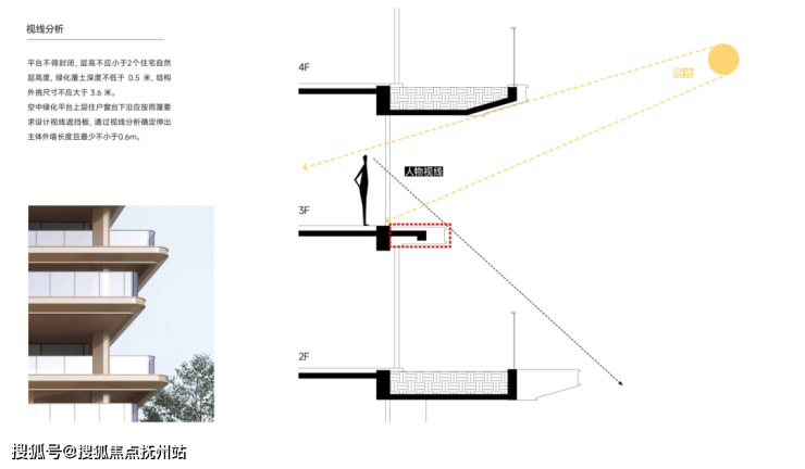 空中绿化平台按照奇偶层进行错位布置,优先设置为一层呈南向布局,一层呈东西向布局,以此减少各平台之间的视线干扰。在同一楼层中,相邻平台之间采用功能性隔断挡板;在上下楼层之间,设置水平挡板,从而实现视线隔离,避免隐私泄露。