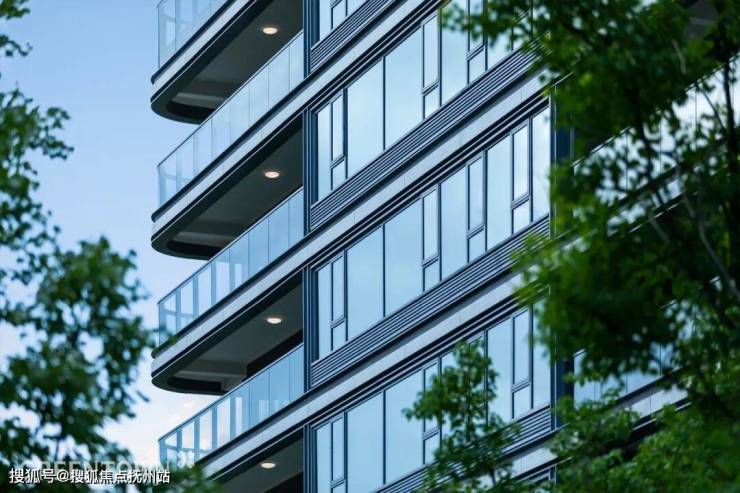 倒映在波光粼粼的江水中,建筑艺术与江岸共融。凤麓和鸣外立面沿袭绿城一贯的审美,江景洋房采用国际游艇形制立面,借以顶部退台、曲面转角栏杆设计,直面县江。