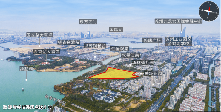 地块南侧是绿地+低矮建筑,视线无遮挡,正面独墅湖一线湖景!西侧隔湖与五星级金鸡湖大酒店相望,真正的闹中取静,静谧的城市半岛,是苏州公认的低密豪宅区。