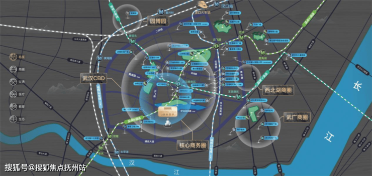 优渥资源 :毗邻华发商都、花园道、龙湖天街、武广等城市商圈,临近梦泽湖公园、辅仁小学以及同济、协和医院等城市高阶医疗资源。