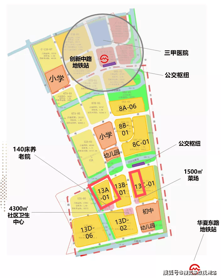项目北侧,华夏东路以北就是融创未来金融城的超级大盘,下图中示意的整个地区约109万方,是上海10年都难遇的超大规模地块。除了项目本身规划合理,周边配套较为完善,附近道路及绿化的打造也让业主的生活环境更上一层楼。