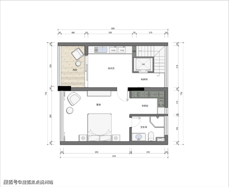 三楼划分为客房供客人居住和洗衣区晾晒阳台为家庭清洁衣物使用。