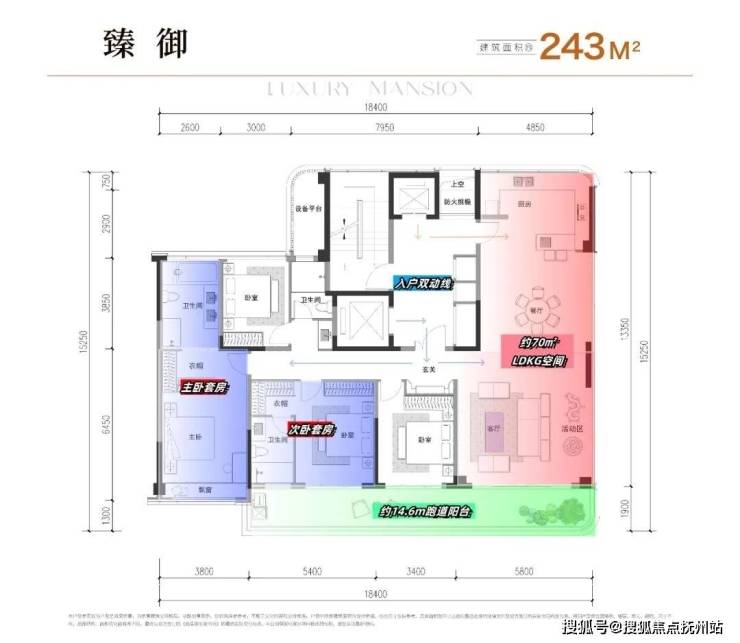 “两梯一户”+“双入户动线”的配置,从进门就开始功能分区,舒适尊贵。