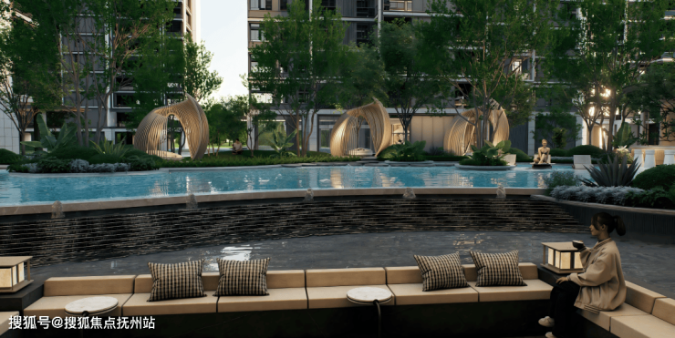 这是在6w+以上的豪宅里才更多出现的做法,比如南星桥的仁恒滨江园,用的就是异型泳池;比如钱江新城二期的芝澜月华,就是把异型戏水池和景观水系融为一体。