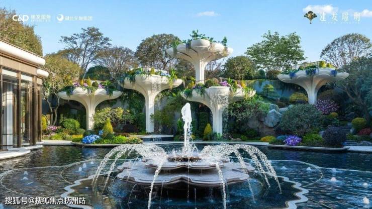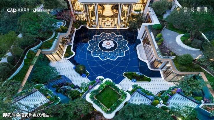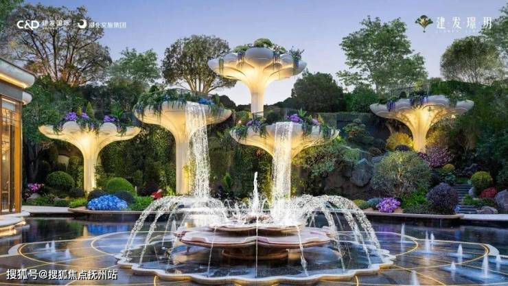 而最大的喷泉,如莲花瓣漂浮于巨大的中央水景之中,让这汪池水,活灵活现了。