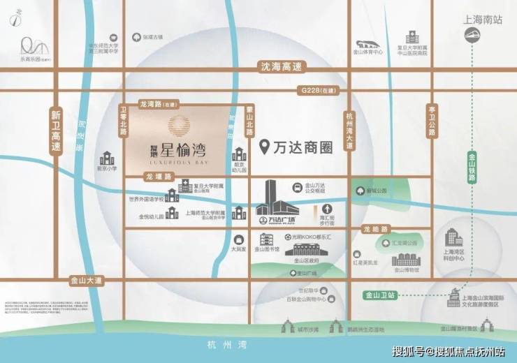 交通配套上,复地·星愉湾距离金山卫站约4.5km,可直达上海南站;周边更有多条公交线路,在紧邻的万达枢纽站,金山10路、山阳1路、石漕线、朱卫线等十余条公交线路,通达金山全域;