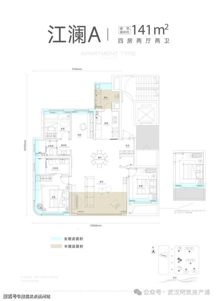 项目一期包含7栋住宅,北区1-2栋,南区3-7栋,其中5-6-7栋(主推169-189㎡)位于项目最南端,可以一线无遮挡看江。