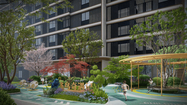 项目架空层涵盖红叶空间、UYONG、游乐空间、睦邻空间、奇妙空间等八大主题,满足户外休闲、童玩、运动等多种生活爱好,居于其中让老有所倚、幼有其乐、青有其趣 ,实现爱好与视野的双重空间利用,更是对未来生活场景的超前演绎。