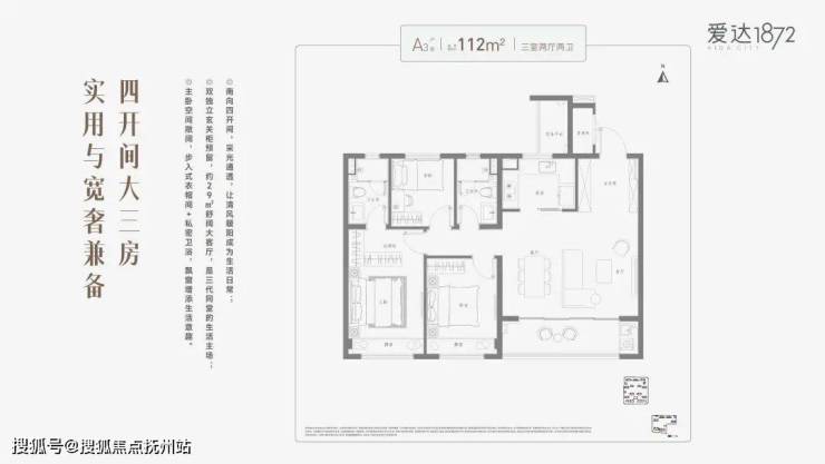 招商蛇口·爱达1872建筑面积约112㎡三室两厅两卫,以科学合理的规划笔触构筑一所“会生长的房子”,匹配家庭的每一个成长阶段。奢阔四开间,让舒适遍布于生活的每一寸肌理之间。