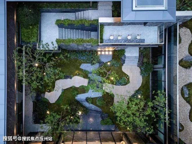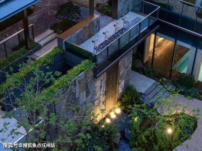 这个庭院美到霸屏,里面点缀着特选黑松、羽毛枫、4棵乌桕等,以及采用约40吨自然石皮面打造的垂直立面墙,整个庭院犹如立体山水画卷,每一个角度都有不一样的风景。