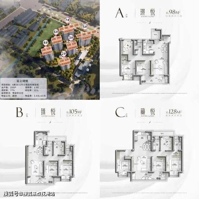 户型面积:建筑面积约98㎡/105㎡/128㎡/145㎡科技美学人居