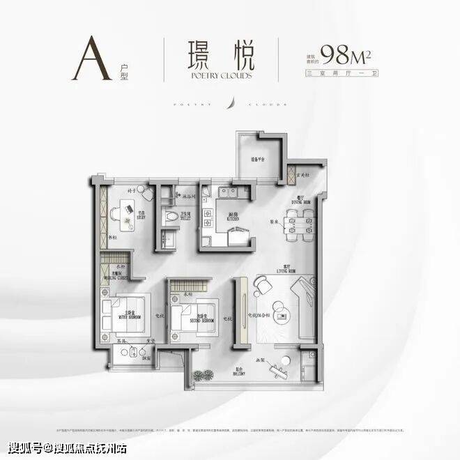 璟悦 建筑面积约98㎡ 三室两厅一卫