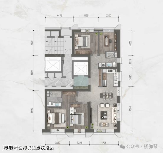 又何谓新贵?他们更年轻、更国际化,追求时尚个性与个人品牌影响力。所以,盛京寳邸156㎡新贵空间,主打现代轻奢风格。整个空间里,无论是高级灰与奶油白演绎出的高贵而又浪漫的色泽,还是法式叠级吊顶与环绕式灯带及奢石地面共同勾勒出的顶级艺术审美,或是L型转角厅带来的270°超级视野,都折射着新贵们璀璨的内心世界。而在精装用材和品牌标准上,这款“新贵户型”与“老钱户型”一脉相承。