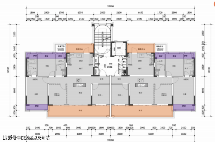 全系四房起步,1梯2户设计,4房2厅3卫