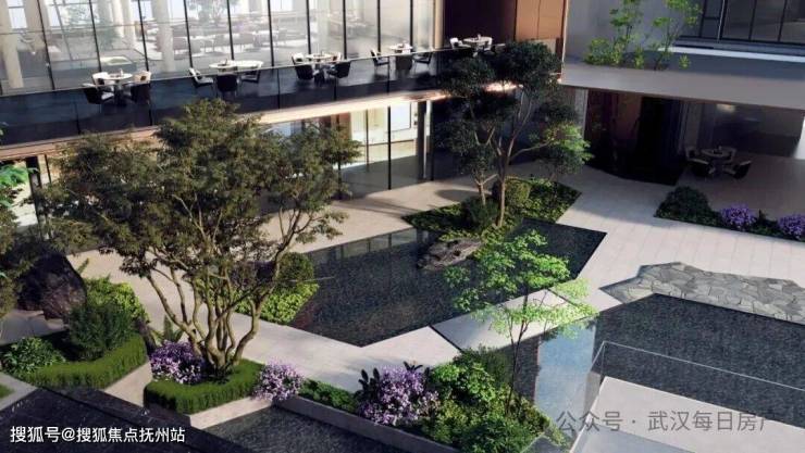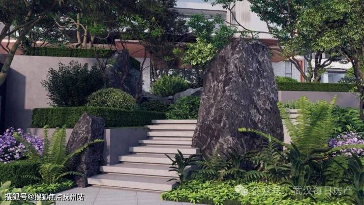 光谷壹号院基于地块天然高差,创新借鉴苏州拥翠山庄的意境营造、美国波特兰凯勒喷泉公园的现代水景手法及纽约泪滴公园的生态理念,打造出武汉罕有的台地式景观体系。