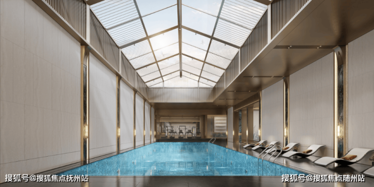 地下恒温泳池:配置了成人标准的泳池(约25*7米),并且单独设置了儿童的戏水空间,健身器材,满足不同年龄层次的需求。设置前台接待大厅,搭配蓝翡翠奢石吧台。