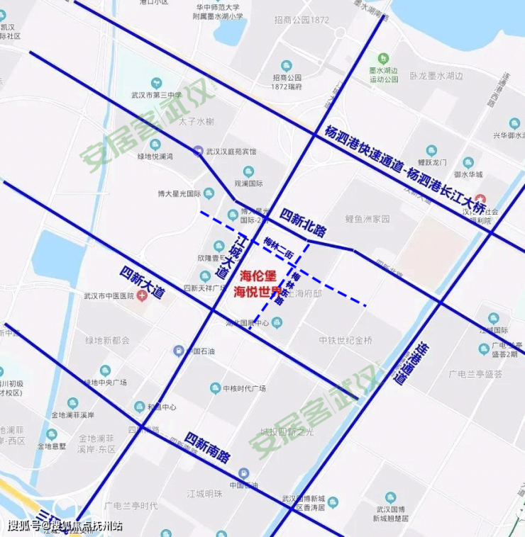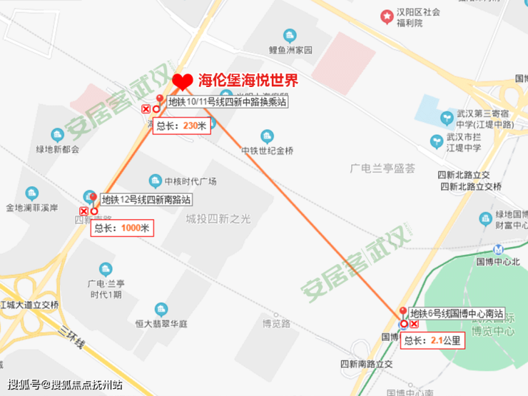 海伦堡海悦世界地处江城大道与四新大道交汇处,紧邻杨泗港快速通道,直线距离约700米,自驾出行方便。