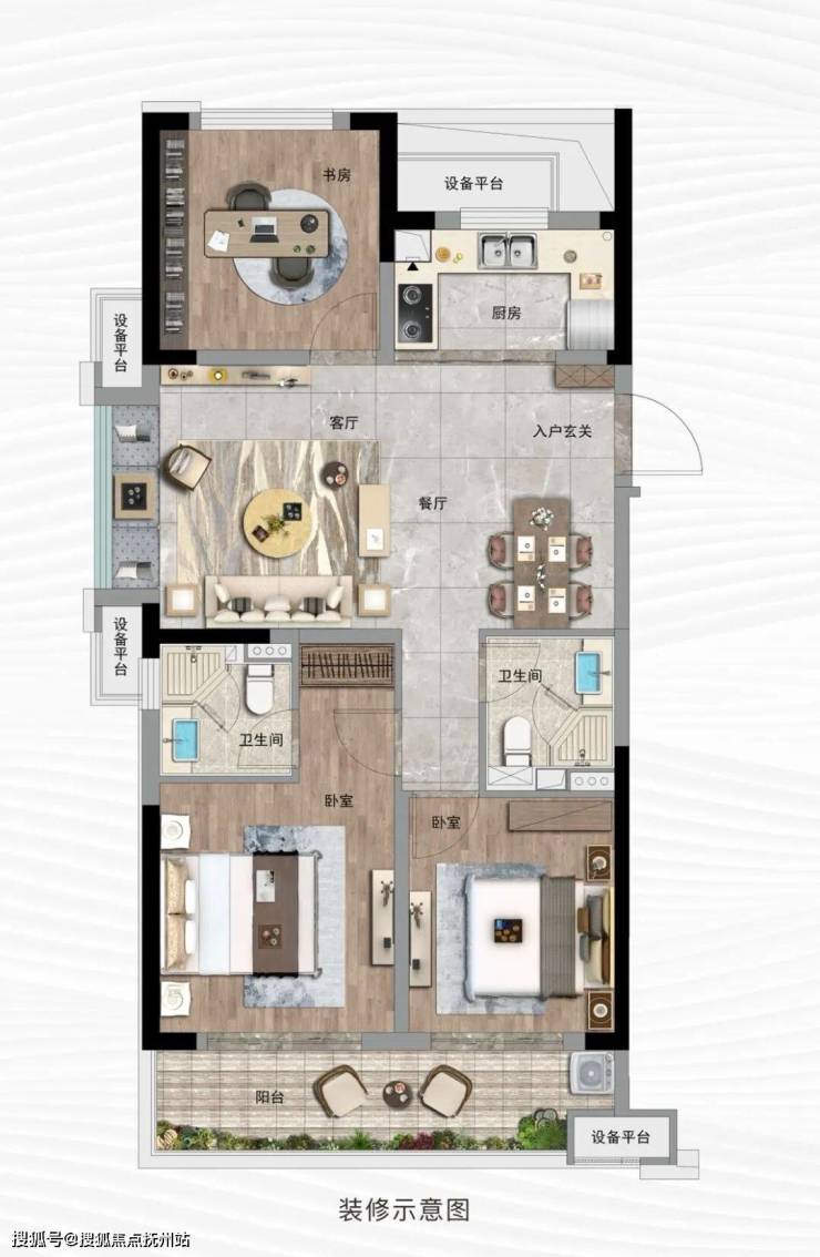 多出一房可根据需求随意改造,可以作为书房,给予男女主人工作上更多独自思考的空间,或者是茶室、玩具房等各种空间,给生活更多的可能。