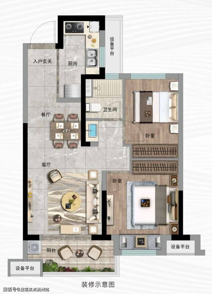 👉建筑面积约75㎡户型|刚需二房