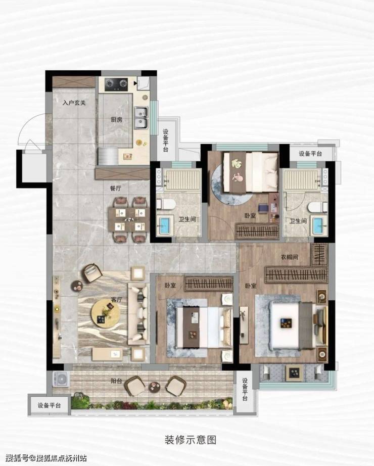 👉建筑面积约113㎡户型|宽境三房