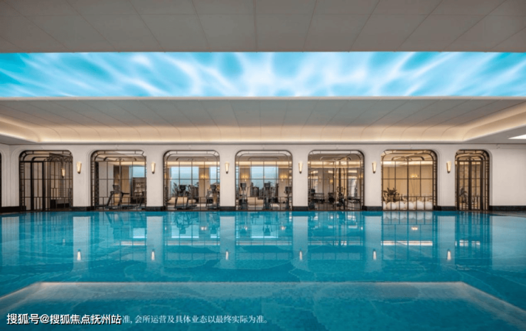 25*10m国际半标五泳道恒温泳池,还配了儿童泳池和泡池,男女更衣室、汗蒸房、储物间一应俱全。
