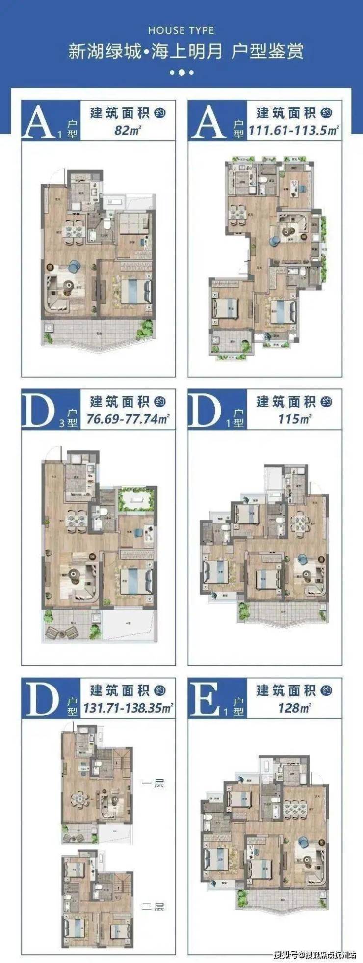 高层户型:78m2 两房两厅一卫;95m2 三房两厅两卫